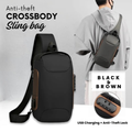 Stay stylish and secure with our Crossbody Anti-Theft Sling Bag! Perfect for travel or daily use, it features hidden zippers 🔒 for extra safety, multiple compartments 🧳 to keep your essentials organized, and a USB charging port 🔌 for power on the move. Crafted from water-resistant material 💧 with a lightweight, unisex design, it offers comfort and style all day long.